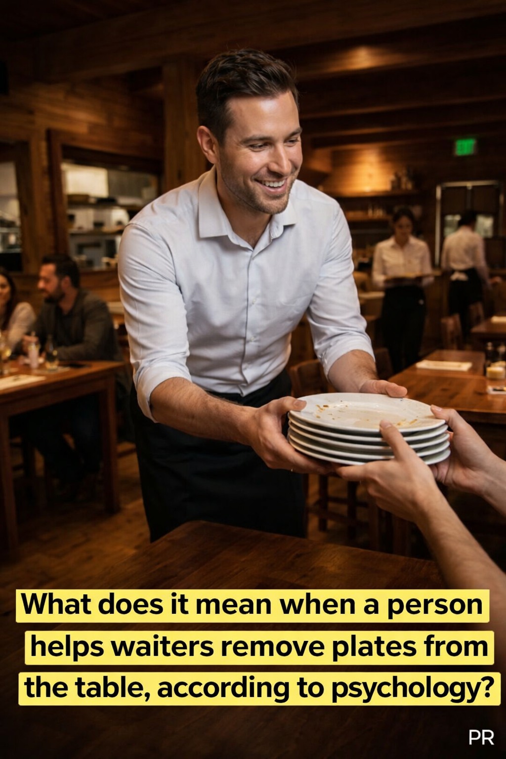 Helping a waiter clear plates during a meal may seem like a small, almost automatic gesture. It often happens quickly—someone gathers a few dishes, hands them over, and the conversation continues. However, psychology suggests that even simple actions like this can reveal subtle aspects of a person’s personality, emotional comfort, and social awareness. While some people assume the behavior reflects either introversion or extroversion, the reality is more complex. The act itself does not define personality but instead reflects how individuals respond to shared social situations.
